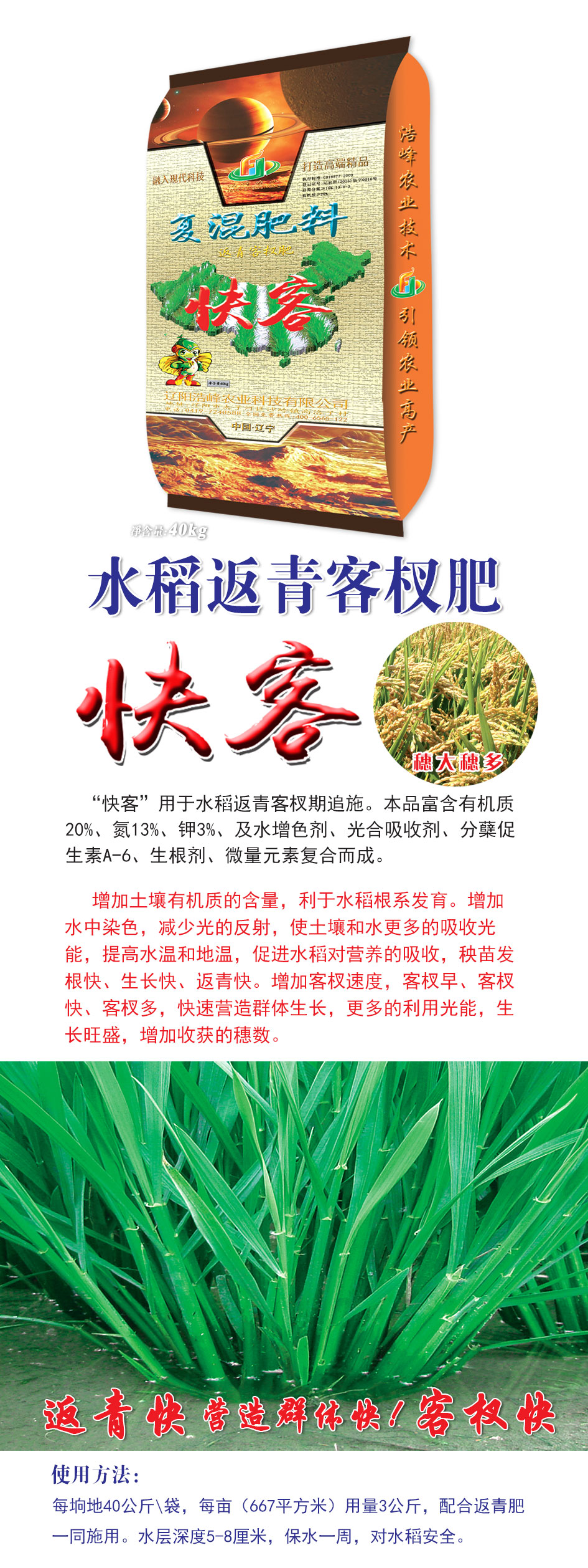 “快客”用于(yu)水稻返青客杈期追施。本品富含有機質20%、氮13%、鉀3%、及水增色劑、光郃吸收劑、分蘖(nie)促生素A-6、生根劑、微量元素(su)復郃而成。